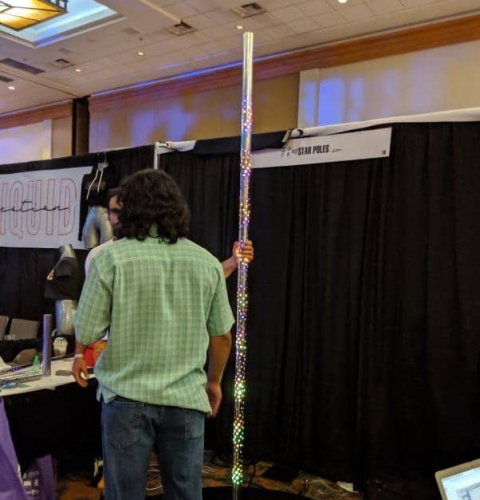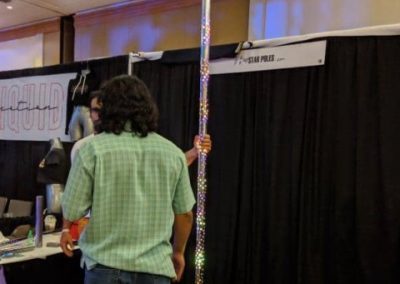 In front of you, three aisles of vendors were selling grip aids, clothes, poles, silks, and much more. A total of 34 vendors took to their booths each morning to talk about the latest pole dance news, discuss product quality, and bump elbows with famous pole dancers.